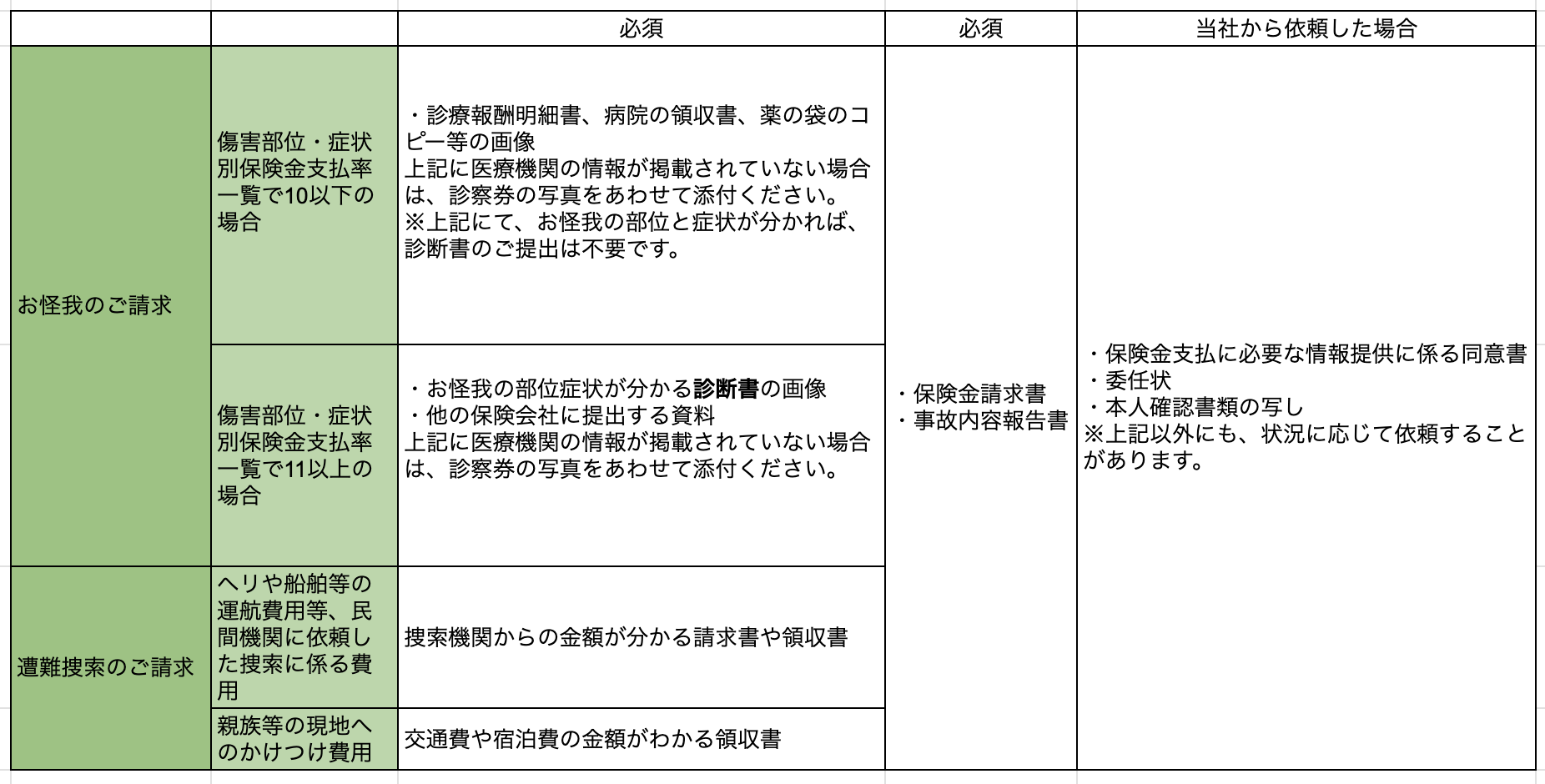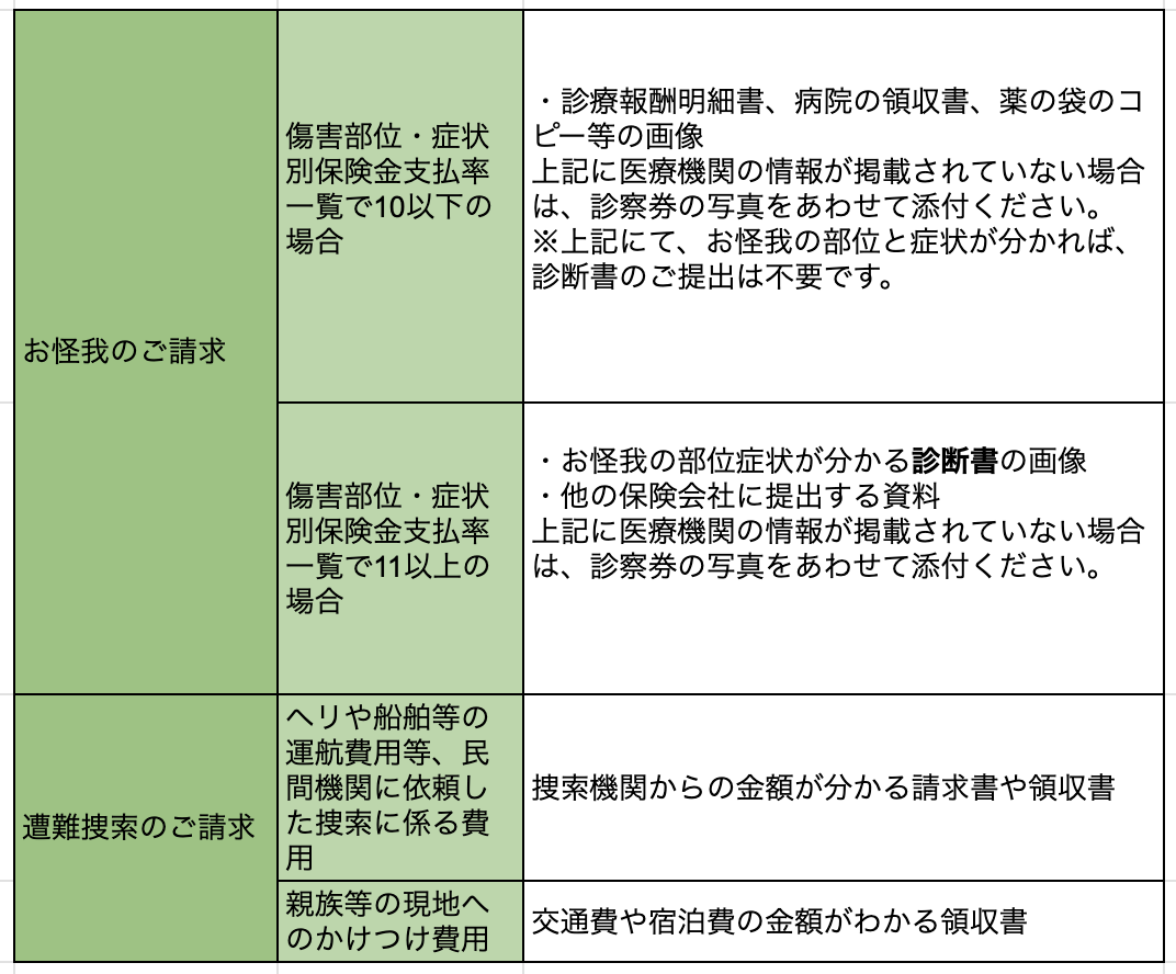 おケガ・遭難捜索のご請求